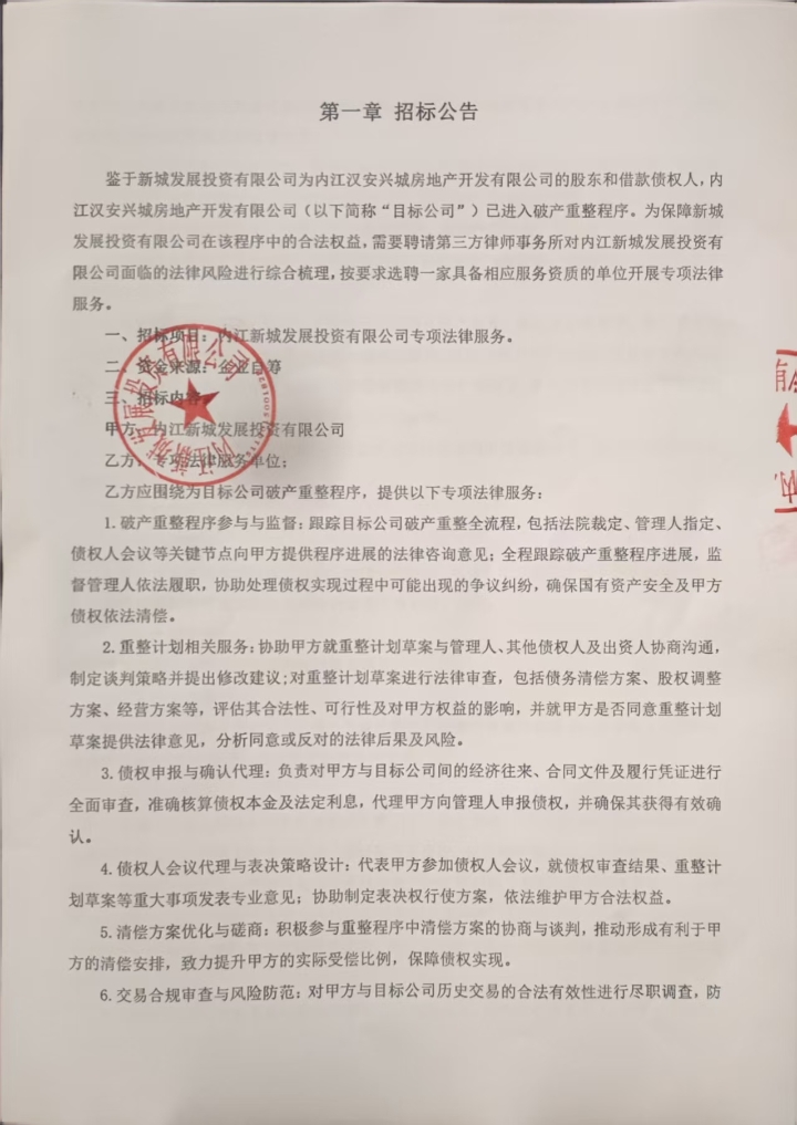 內(nèi)江新城發(fā)展投資有限公司聘請(qǐng)專項(xiàng)法律服務(wù)招標(biāo)公告